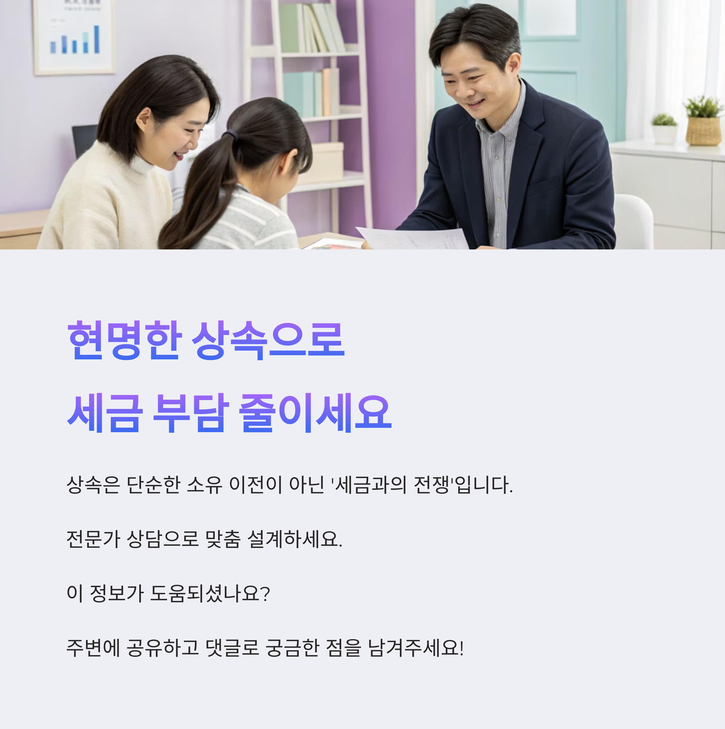 모든 케이스에 정답은 없습니다. 자녀들의 자산 상황, 보유 주택의 시세, 상속인의 거주 여부 등 복합적 요소에 따라 달라지기 때문에 세무 전문가의 상담을 통한 맞춤 전략이 반드시 필요합니다.