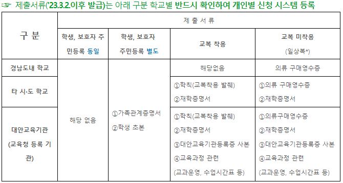 경상남도와 경상남도 소재 시·군에서 학부모님들의 교육비 부담 경감을 위해 2023학년도 중, 고등학교 입학생에게 교복(일상복) 구입비를 지원한다고 합니다. 이런 지원은 아는 사람만 받고 모르면 넘어가게 되니 어서 신청해서 꼭 30만 원